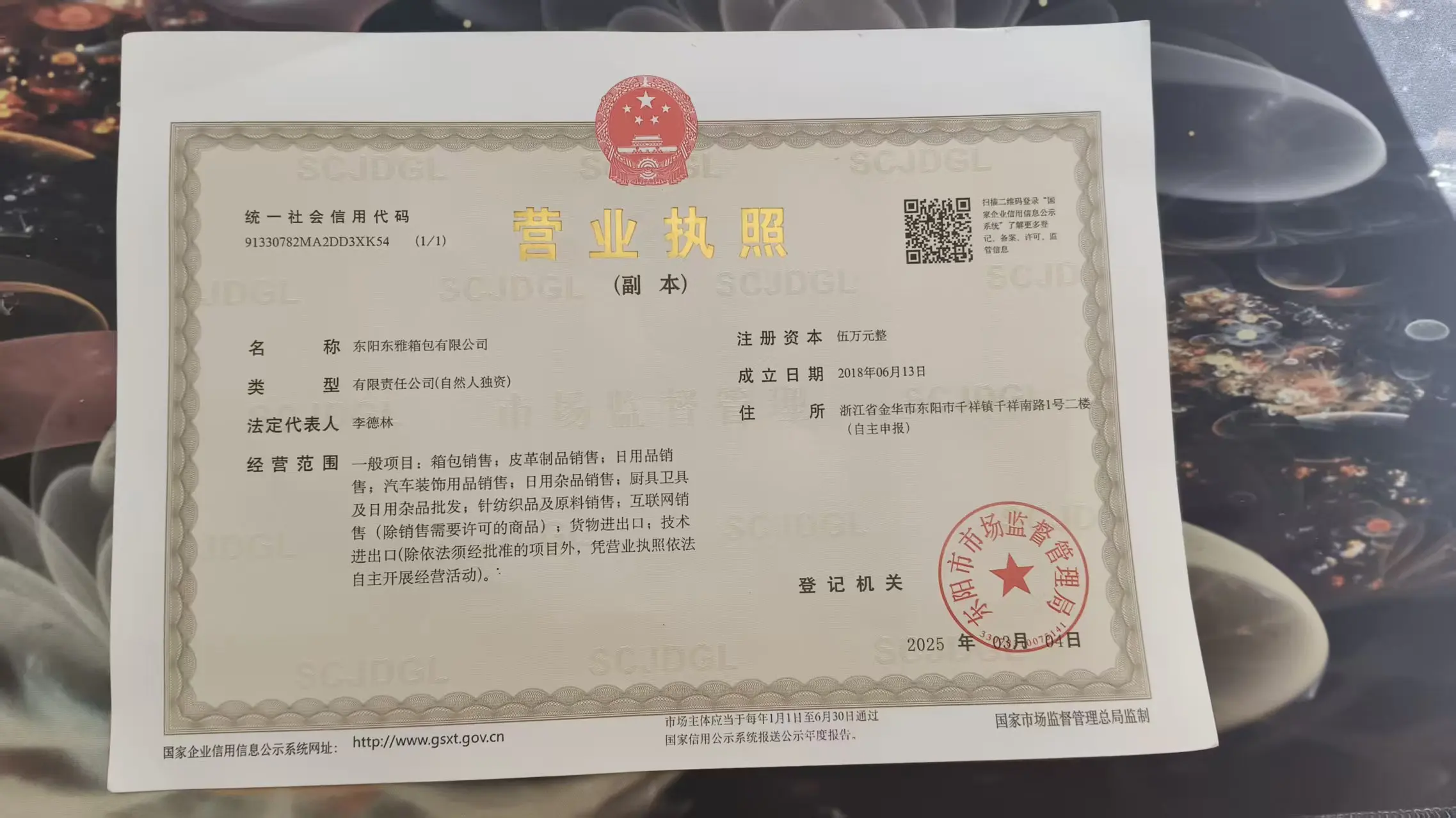 Registered address : 2nd Floor, No.1 Qianxiang South Road, Qianxiang Town Jinhua Zhejiang China