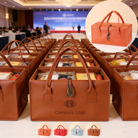 Leather Gift Bag PU Leather Custom Logo Luxury Look for Wedding Favors Bulk Gift for Guests Gift Bag Box Foldable Large AV01